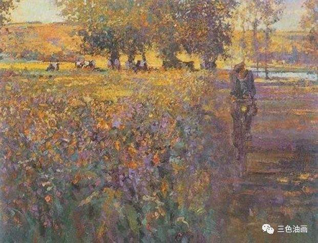 半透明色层也能够产生视觉混色的效果。举个例子,将蓝色的半透明色层铺涂在黄色的底子上,形成的绿色要比实际混合黄色和蓝色的颜料所得到的绿色要生动得多。光线照射进半透明的色层,又被底子折射出来给人以明亮鲜艳的感觉。