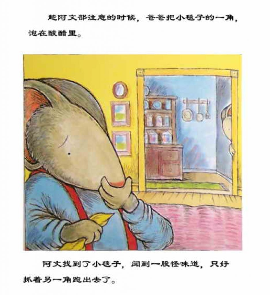 在故事的开始,阿文坐在院子里抱着心爱的小黄毯,隔壁的阿姨就像看热闹一样好奇的趴在栅栏边。一天“隔壁的阿姨忍不住说话了”,说明阿姨早就在看笑话,这个孩子怎么老是和毯子玩,家长也不管管,让我这个有经验的阿姨教他们,怎么让孩成长。于是阿姨告诉这对家长,编个小故事哄哄孩子就行了。小孩子并没有大人想象的那么单纯,阿文为了不让毛毯精灵带走自己的“伙伴”,把它藏进了裤子里。第二天阿文很得意的炫耀自己的“伙伴”没有被带走。爸爸说“难怪。。。”难怪大人们没有找到毯子。接着,这对家长开始语言攻击小黄毯,“好脏,又破又旧,丢掉算了”家长执意要丢掉阿文的心爱之物,陪着自己玩耍,理发,拔牙,就像一个陪着自己经历生活的小伙伴。没有透过现象看本质的家长,可能并不知道小黄毯带给阿文的陪伴和安全感有多么的强烈。这时,隔壁阿姨上线了,图中的阿姨把花盆垒起来当做凳子站着,又开始“教育”这对家长。“试试泡醋的方法”。阿文依然找到了自己的解决方式。最后,隔壁阿姨的大招“不行!”爸爸妈妈左一句“不行”右一句“不行”就像做坏事一样惩罚阿文,阿文伤心的哭了。这时父母意识到了事情的严重性,拒绝别人的看法,妈妈想办法解决了事情。阿文既不会丢掉小黄毯,又能干净的卫生的使用小黄帕。